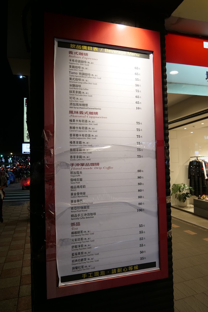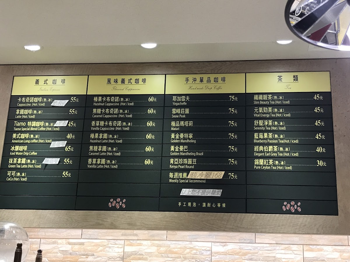 Tiamo Cafe 堤亞摩咖啡生活館 士林門市 Menu